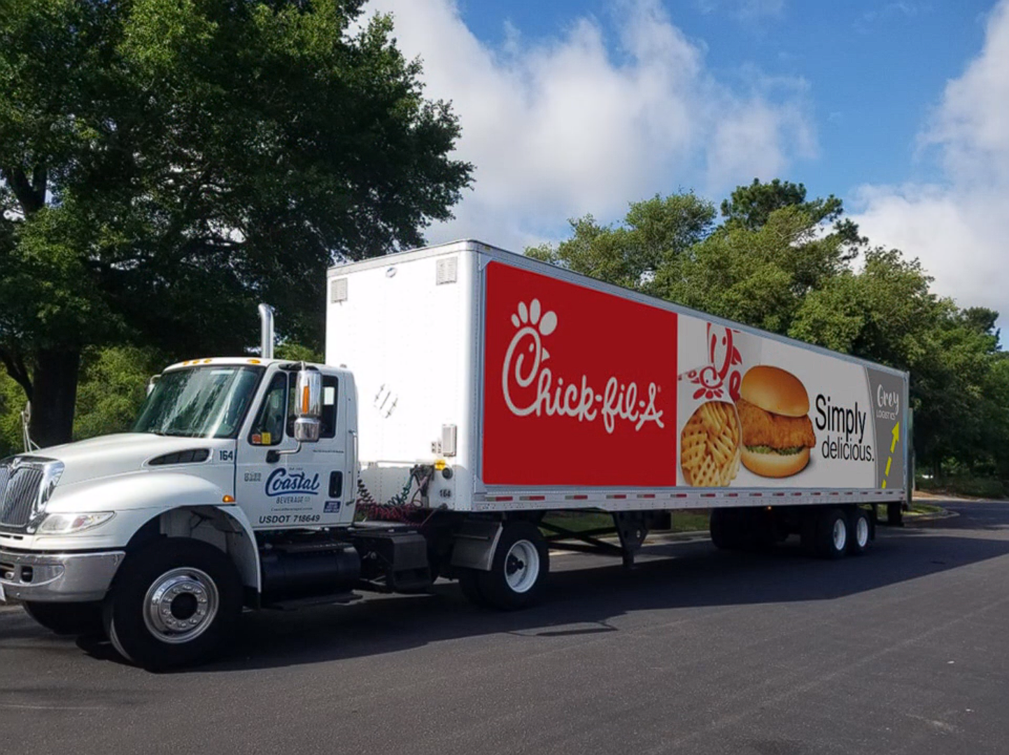 We also respect and make sure that your fleet logo is protected, and, in many cases made even more prominent as we either frame our ads around your fleet logo, or include it within the trailer ad graphics. Either way, your company name...your brand, is both respected and protected...and will even be noticed more frequently because of the eye-catching graphics on the trailer.