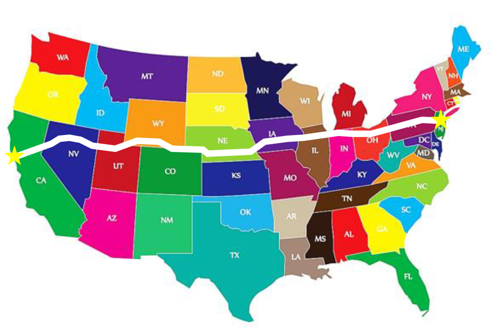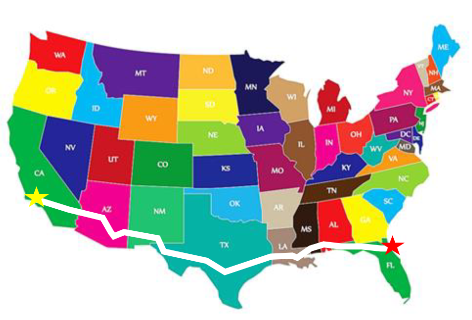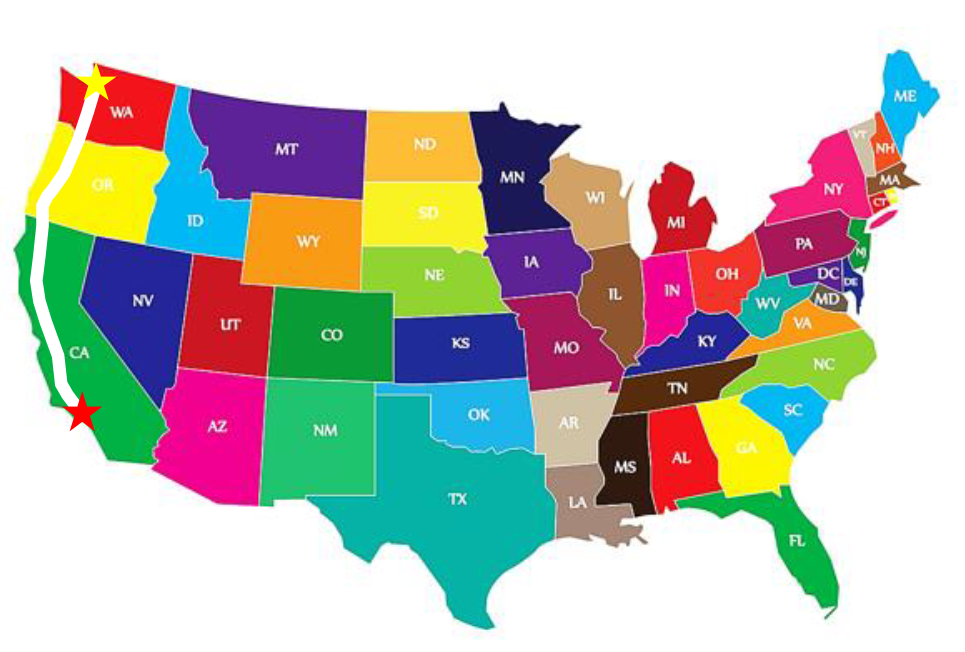 California – 796.53 miles Cities – San Diego, Santa Ana, Los Angeles, Stockton, Sacramento, Red Bluff, Anderson, Redding, Yreka