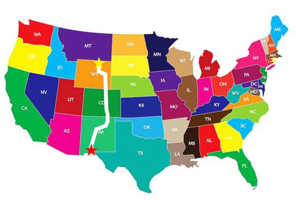 Montana – 551.68 miles Cities – Missoula, Deer Lodge, Butte, Bozeman, Livingston, Laurel, Billings, Hardin