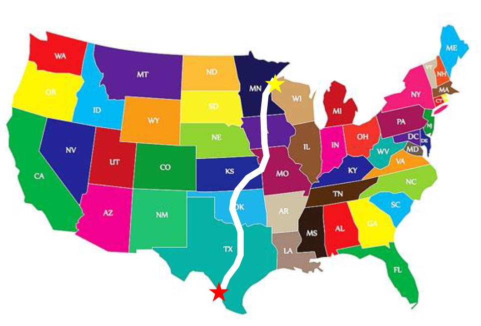 Minnesota – 259.69 miles Cities – Albert Lea, Owatonna, Faribault, St. Paul, Duluth