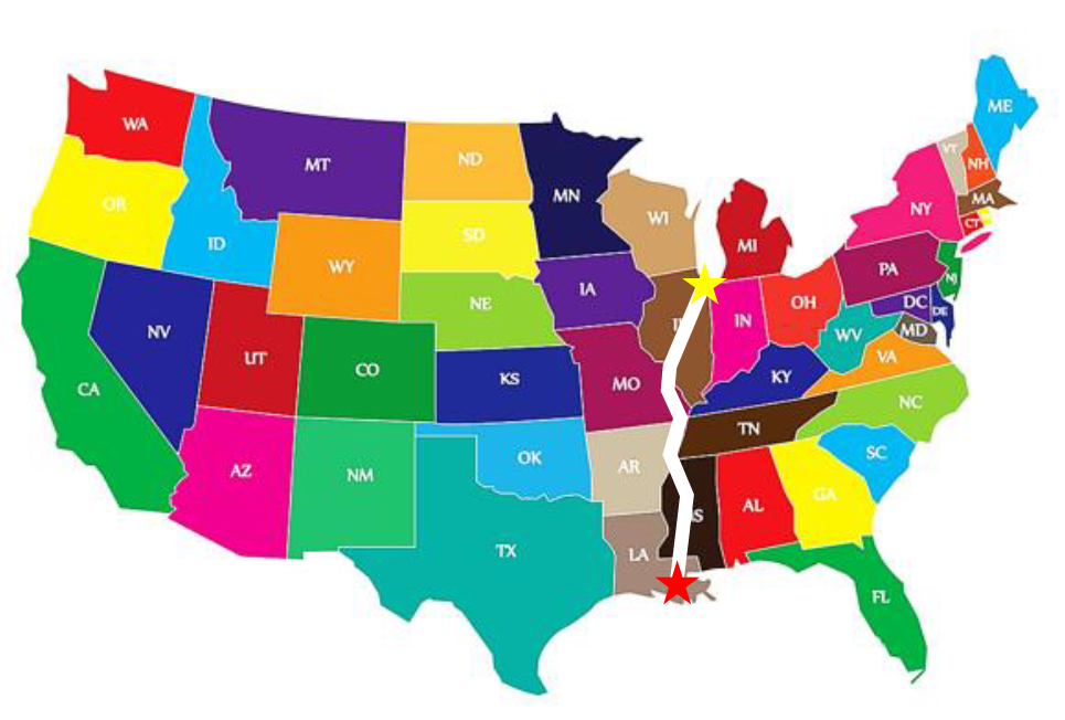 Louisiana – 274.42 miles Cities – Lake Charles, Lafayette, Baton Rouge, New Orleans, Slidell